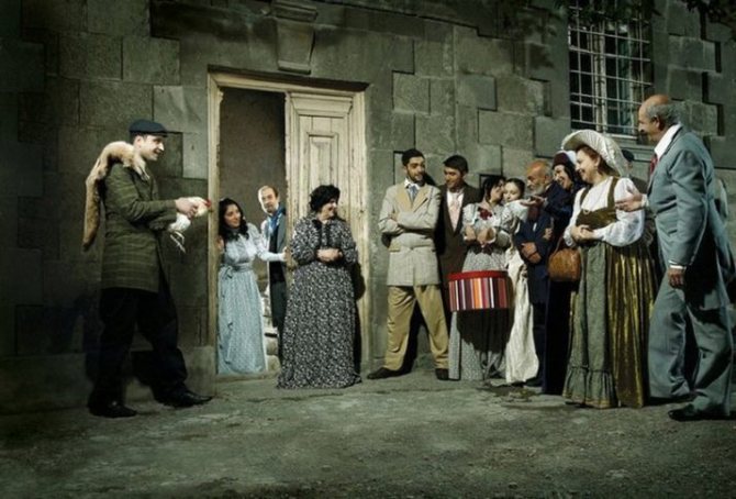 Так проводилась традиционная армянская свадьба, традиции предполагали, что в доме невесты садятся за столы, поднимают бокалы и говорят тосты. Каждый тост сопровождается подходящей по смыслу мелодией.