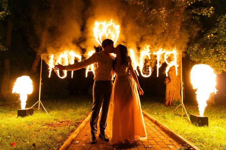 Предоставленный тип надписей является прекрасной идеей для декора на свадьбу. Как правило, это буквы гигантских размеров, размещенные в банкетном зале. Данные надписи — прекрасный повод обратить внимание приглашенных гостей на тот или иной факт, связанный с молодоженами. Данный реквизит сделает ваши фотографии оживленными и своеобразными, а изобилие материй для создания уникальных аксессуаров разрешит вам поэкспериментировать с наружным видом, величиной и типом декора.