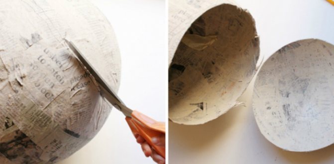 - Нарежьте газету на квадратики, надуйте шарик среднего размера. Наклейте на шарик слоями газетные заготовки и оставьте основу для будущего пиона на сутки, чтобы все хорошо просохло: