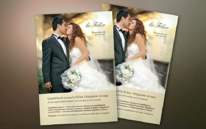 Распространяйте листовки в загсах, ювелирных магазинах, разложите их в почтовые ящики домов города – даже если на эту рекламу откликнется не так уж много людей, это станет отличным стартом для вашего салона. Раздачу листовок можно организовывать не только на этапе открытия, но также в период скидок и в сезон свадебного ажиотажа.