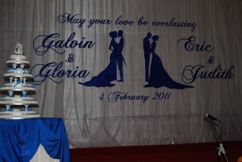 Можно упростить себе задачу и закрепить баннер на стене банкетного зала. Некоторые пары предпочитают вообще не использовать каркас. В этом случае баннер крепится на веревку с помощью обычных прищепок.