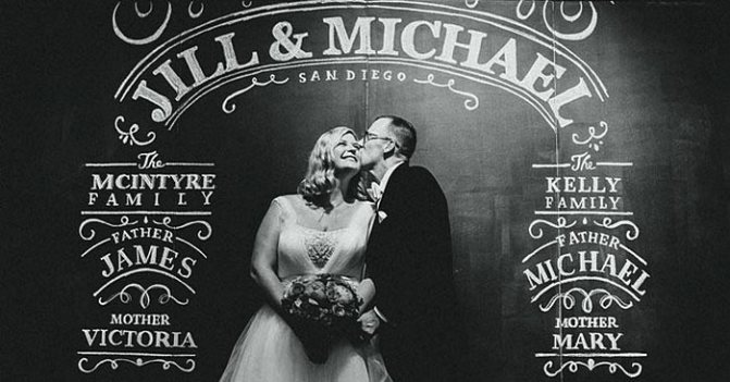 Photo на фоне надписей с указанием даты свадьбы или имен молодых становится все более популярным у современных молодоженов.