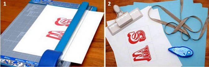 - Ножом сделайте на каждой букве по две прорези для ленты. Чтобы буквы держались на своих местах и не ездили, отверстия должны быть меньше ширины ленты.