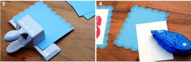 - Обрежьте листы голубого картона для подложки до необходимого размера (они должны быть больше, чем белые заготовки с буквами).