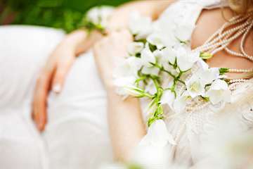 Комфорт – это первостепенное условие для невесты, которая выходит замуж беременной. Выбирайте наряд из натуральных тканей. Избегайте облегающих фасонов, синтетических материалов. Невесте не стоит надевать платье с большим количеством сеток, внутренних швов, кружев. Обилие таких декоративных элементов вполне вероятно станет причиной развития кожного зуда, раздражения. Бижутерия, которая будет соприкасаться с кожей беременной, должна быть выполнена из качественного металла.