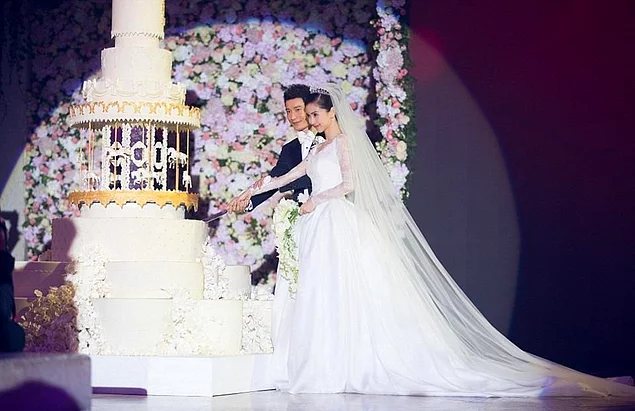 Свадьбу Анджелы Бейби (настоящее имя звезды Анджела Енг), известной как китайская Кардашьян, и актера Хуана Сяомина иначе как шикарной не назовешь. Обручальное кольцо Анджелы от ювелирного дома Chaumet обошлось ее супругу в 1,5 миллиона долларов. Платье новобрачная заказала у Диора. На его выполнение ушло 5 месяцев!