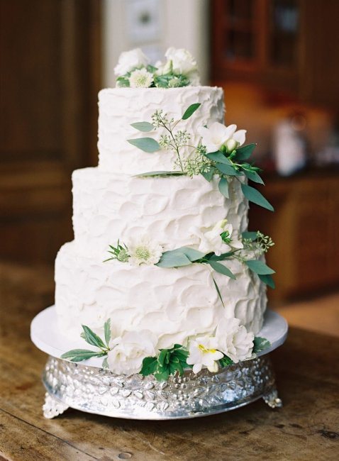 - Если вы опасаетесь, что не угадаете с оттенком, вы всегда можете остановиться на классическом варианте десерта в белых тонах или кремовом свадебном торте, который прекрасно впишется почти в любую палитру праздника.
