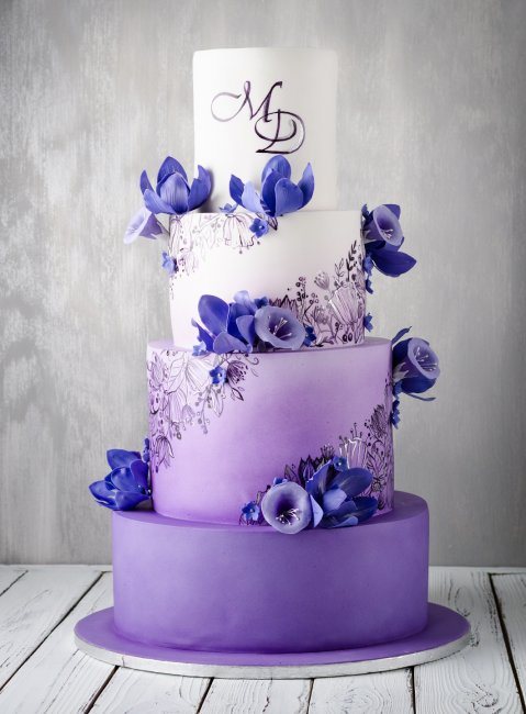 Если вы хотите, чтобы ваш десерт смотрелся действительно ярко и необычно, оформите его в насыщенных фиолетовых тонах. С цветом можно поэкспериментировать, используя более мягкие оттенки для внешней части торта и более яркие для начинки.