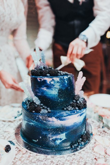 Любители холодных оттенков останутся в восторге от красоты синего свадебного торта, который сделает праздник по-королевски роскошным и эффектным. Свадебные торты модного синего цвета можно украсить плодами голубики и ежевики или изобразить на десерте настоящее звездное небо! Разбавить насыщенность синего можно белым цветом, который добавит десерту выразительности и нежности.