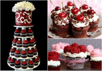 Часто такой десерт создаётся только для молодожёнов, а остальных гостей угощают порционными капкейками, созданными в той же цветовой палитре.