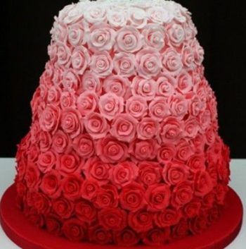 Все пять ярусов этого ярчайшего торта устилали ярко-красные розы. Он был наполнен малиновым вареньем и белым сливочным кремом.