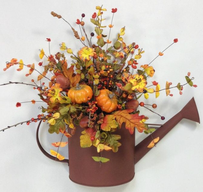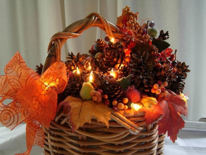 В осенние месяцы сама природа подбрасывает идеи и навевает мысли о совместном творчестве. С использованием вторичного сырья можно создать уникальные композиции соответствующей тематики. Это могут быть: