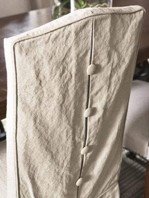 Различного рода чехлы для мебели уже не модны, но если речь идет о кухне – там всегда пригодятся льняные «одежки» для стульев. Если от мамы еще и скатерть досталась, то будет полный комплект льняных украшений.