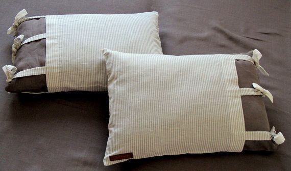 Что может быть милее, как не подушечки изо льна, внутри которых качественный материал, не вызывающий аллергий и парения. Плотный лен можно выбрать под цвет гардин, сделать композицию орнамента или простого рисунка на подушках. Главное, чтобы супруга могла их в комнате пристроить подо что-то в интерьере.