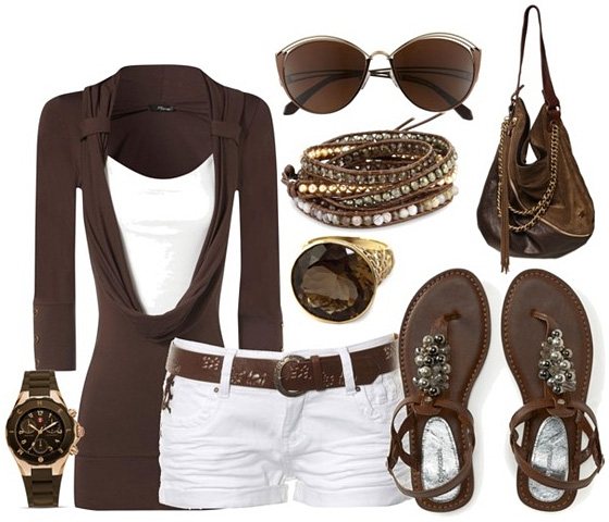 Вы можете надевать коричневые аксессуары, обувь, бижутерию (кожаные ремешки, браслеты, бусы), а весь остальной гардероб – по велению души, и будете смотреться правильно, гармонично.
