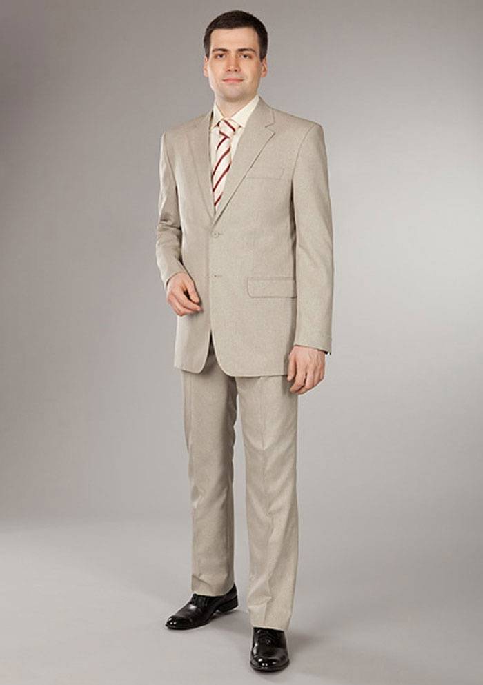 Комплекты бежево-серой гаммы отлично подойдут для теплого времени года, достойно подчеркнув праздничную атмосферу свадьбы. Лен – достаточно легкая, натуральная ткань, поэтому такой костюм не позволит вам вспотеть даже после участия в зажигательных свадебных конкурсах. Смотрите фото с примерами таких костюмов: