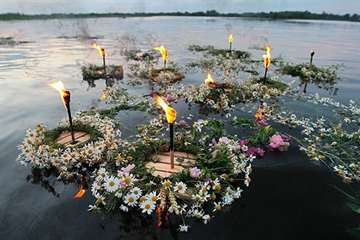 Запуск корабликов (венков) на воду