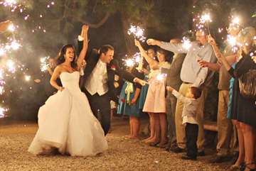 Эффектным финалом свадебного вечера станут бенгальские огни. Попросите гостей выстроиться в «живой коридор», через который вы пойдёте, и раздайте каждому бенгальские огни. Или во время финального танца гости, взяв в руки бенгальские огни, могут сделать красивый искрящийся круг вокруг пары молодоженов. Фантастические фотографии вам обеспечены! Плюс ко всему, бенгальские огни стоят недорого, что делает их доступными практически для любого бюджета.