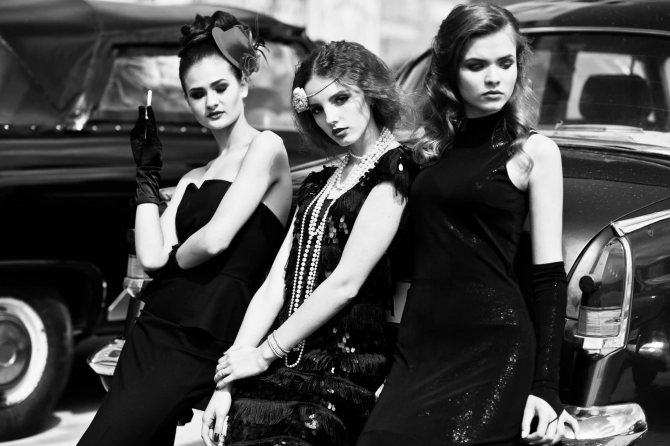 Мода 20-х годов прошлого века – очень противоречивый стиль с ноткой утонченной женственности и феминизма. Образ того времени – дерзкая, экстравагантная, независимая красотка. Именно в это время женщины стали получать больше прав и всё больше стремиться к выходу на один уровень с мужчинами, что привело и к изменениям как во внешнем образе, так и в манере вести себя на публике. В это время светские рауты сменяются шумными вечеринками, красивыми платьями, длина которых от 20-го до 29-го года неизменно укорачивается..