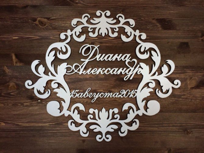 На самый просто баннер без вычурных рисунков и прочих дополнительных деталей можно прикрепить надпись из дерева, обрамленную в красивую узорную рамку. Сегодня очень модно применять в декоре такие детали, поэтому баннер с деревянной надписью смотрится очень интересно и современно.