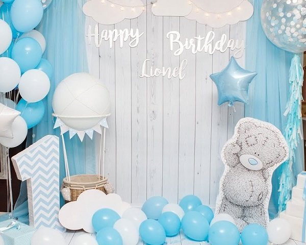 Тему и цветовую гамму лучше согласовать с именинницей заранее. Пригодятся воздушные шары, фанера, фонарики, ткань для драпировки.