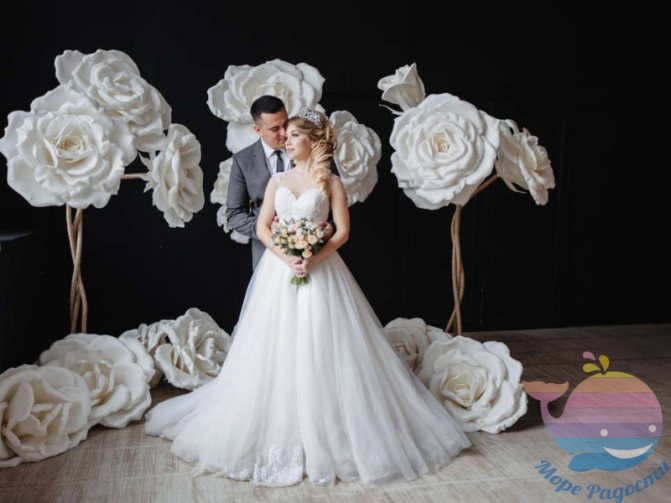 Конечно, молодожены предпочитают арендовать уже готовую фотозону, но при желании их родственники вполне могут заняться созданием собственного уникального фона для предстоящей фотосъемки.