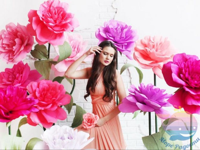 Ростовые цветы из данного материала пользуются спросом – с ними так легко почувствовать себя Дюймовочкой! С гигантскими цветами получаются интересные фотосессии.