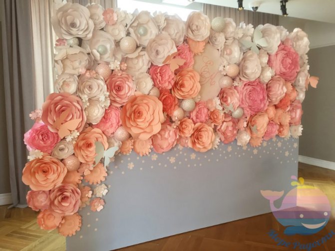 Фотозона из бумажных цветов одна из самых популярных на разных праздниках. Этот тип фотозоны актуален для детского праздника, свадьбы, 8 марта, летнего корпоратива, тематической вечеринки, декора магазина и создания кенди бара.