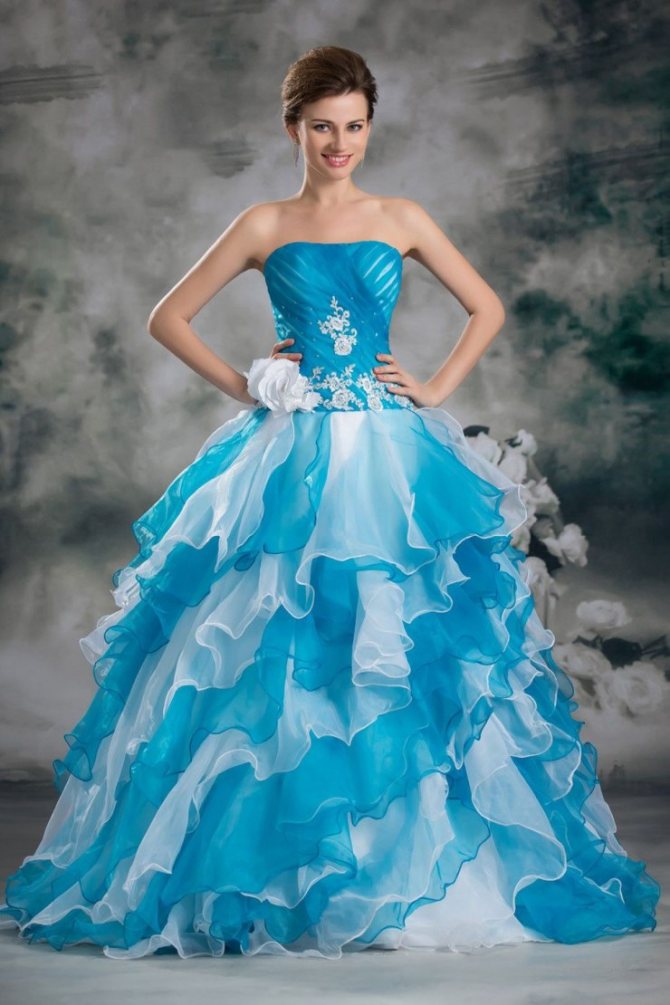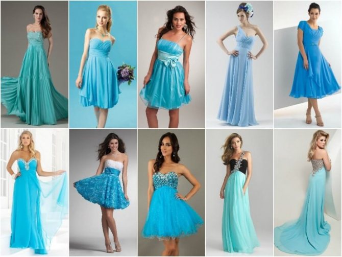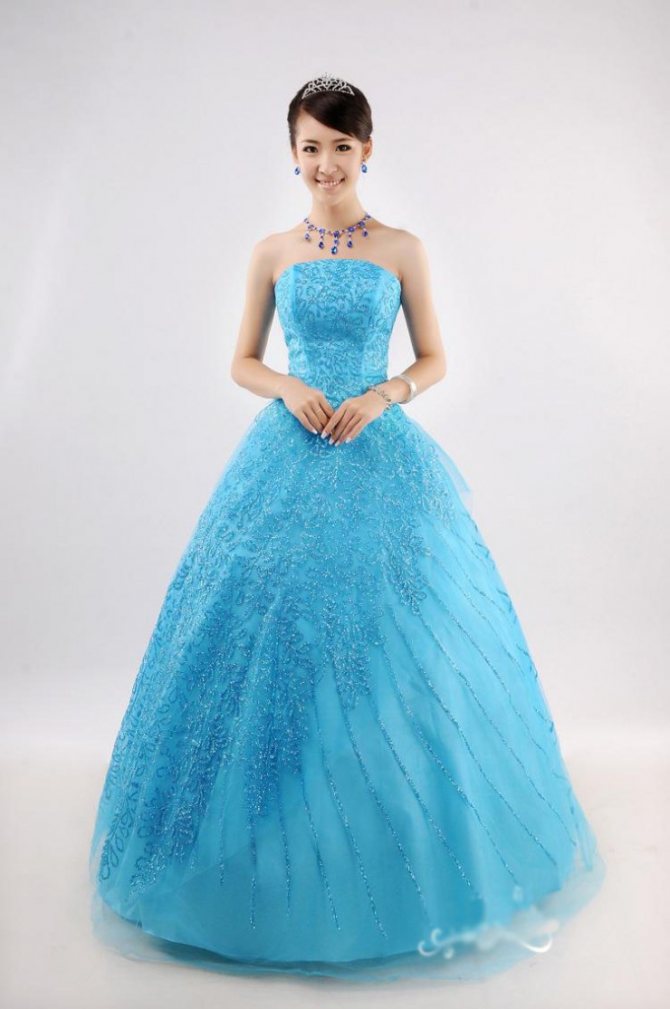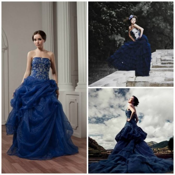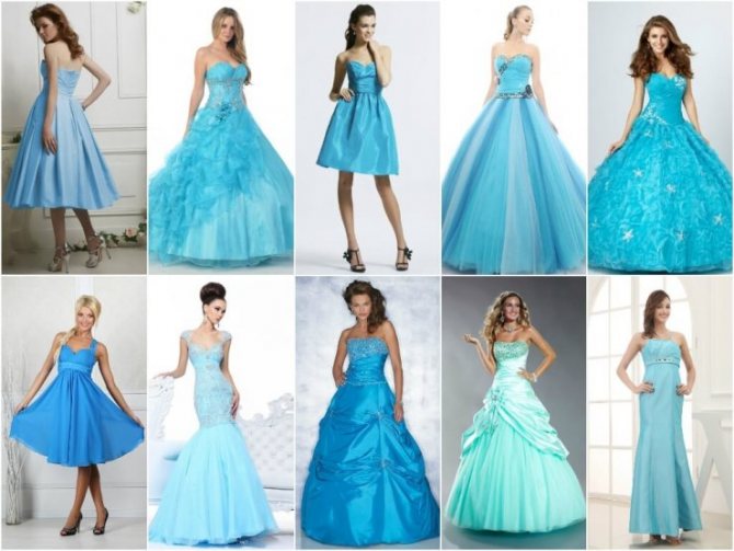 Отдавая предпочтение пышному наряду в голубом, можно достичь воплощения в реальность изящества, а также женственности.