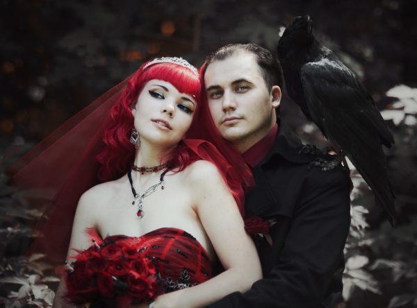 Свадебная мода насчитывает большое количество стилей, но самый эпатажный – готический. Если традиционное белоснежное платье символизирует невинность и чистоту невесты, то красно-черный наряд готов показывает коварную сторону женщины. Выбор образов этого стиля тоже большой. Если невеста выбирает черное платье, то она должна быть белокожей брюнеткой, чтобы идеально соответствовать готике. Для готической прически гладкие волосы не подойдут, ключ к успеху – это пышность.