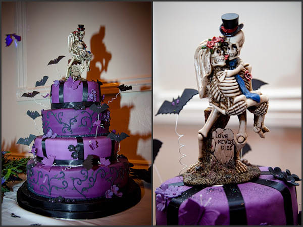 Готическая свадьба подразумевает и необычное оформление сладостей. Свадебный торт может представлять собой настоящий кондитерский шедевр с декором из черепов, черных цветов, цепей или замка. Черный шоколад в сочетании с белым и красным создадут незабываемый свадебный десерт.