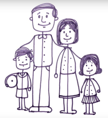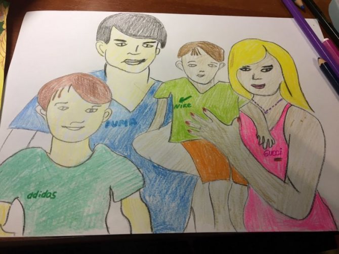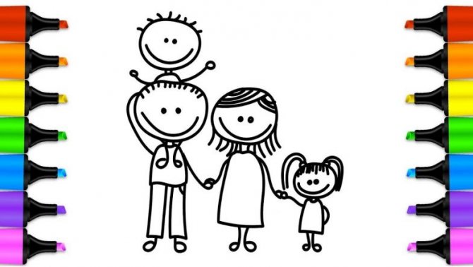 - Нарисуйте фигуры мамы и дочки рядом с отцом и сыном;