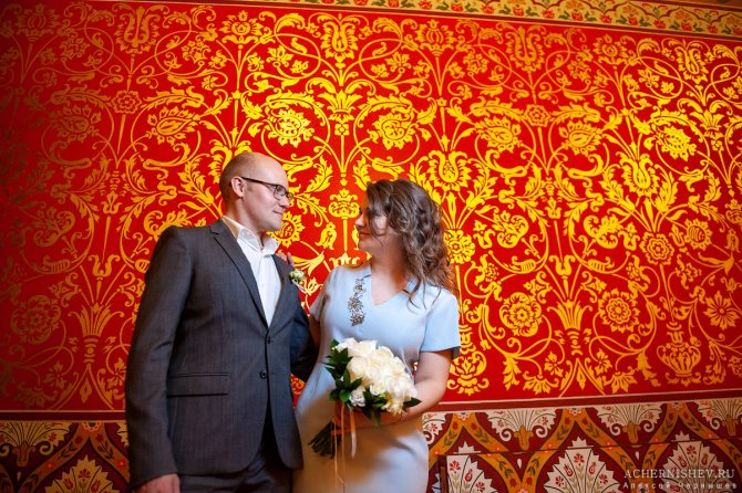 - Заранее отрепетируйте у зеркала — как вы будете стоять в зале регистрации. Обычно невеста держит жениха под руку. Обратите внимание на осанку и выражения своих лиц, легкую улыбку.