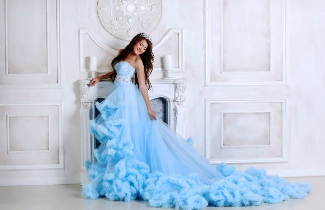 Свадебные платья голубого цвета: приметы, фасоны, аксессуары