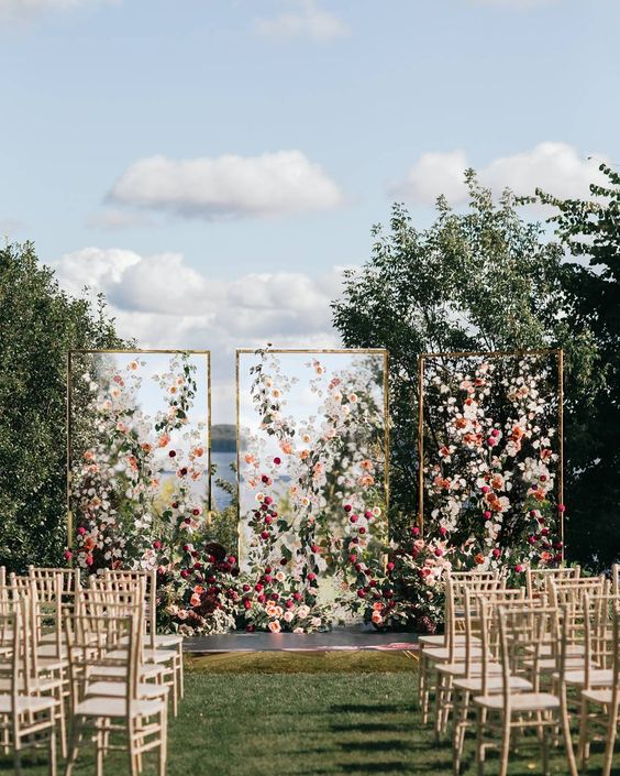Для тематической свадьбы «Минимализм» подойдут строгие линии черно-белого цвета, для рустикального торжества или «Бохо» будет актуальна арка из дерева, дополненная объемной травой, а классический праздник уместно разбавить металлическими деталями и нежными цветами.