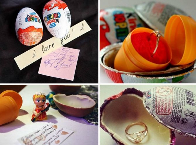 Нередко мужчины задумываются как эффектно и небанально преподнести колечко в подарок. Все девушки любят романтику, поэтому дарить его лучше в непринуждённой и расслабляющей обстановке, например, во время морского путешествия, на фоне морского заката, во время ужина в ресторане. Кольцо можно спрятать в букете, но убедиться, что девушка кольцо нашла. Не желательно подкладывать кольцо в десерты и напитки, с целью убирания ситуации, когда девушка может проглотить это кольцо. Кольцо можно подарить как угодно и любым способом, главное, чтобы это было искренне и от души.