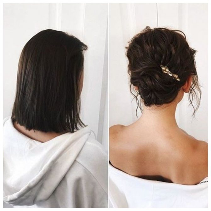 Самый простой вариант создания праздничного образа на короткой длине – это укладка волос «вручную», как с помощью фена, так и без него. Практически любой образ вы сможете без труда создать самостоятельно, без посещения салонов и парикмахерских. Вам потребуются всего лишь лак, мелкие заколки и мусс.