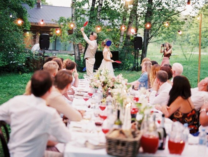 Но и классический вариант с росписью в ЗАГСе и празднованием в ресторане – тоже отлично. Тем не менее, независимо от места проведения, необходимо постараться сделать так, чтобы атмосфера была радостной, уютной, романтичной и не создавалось ощущения, что это обычный семейный ужин, а не свадьба. Каждому гостю должно быть комфортно и не скучно.
