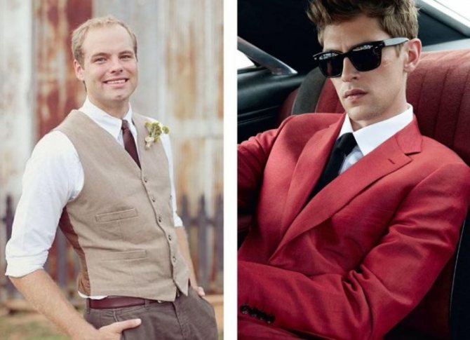 - Старайтесь не акцентировать внимание на недостатках фигуры жениха. Если он отличается излишней худобой или полнотой, то костюм лучше выбирать спокойной однотонной расцветки, избегая нежелательных цветовых акцентов.