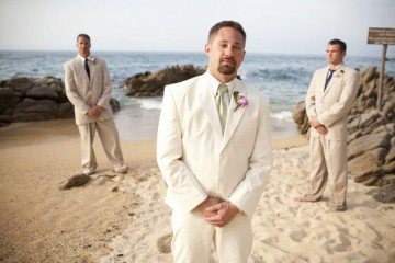 - одежда жениха в идеале должна быть яркого контрастного цвета (графитового, серого, темно-коричневого) – но ни в коем случае не бежевого, иначе молодожены будут «теряться» на фоне друг друга;
