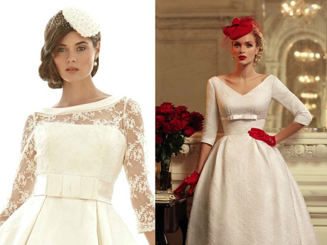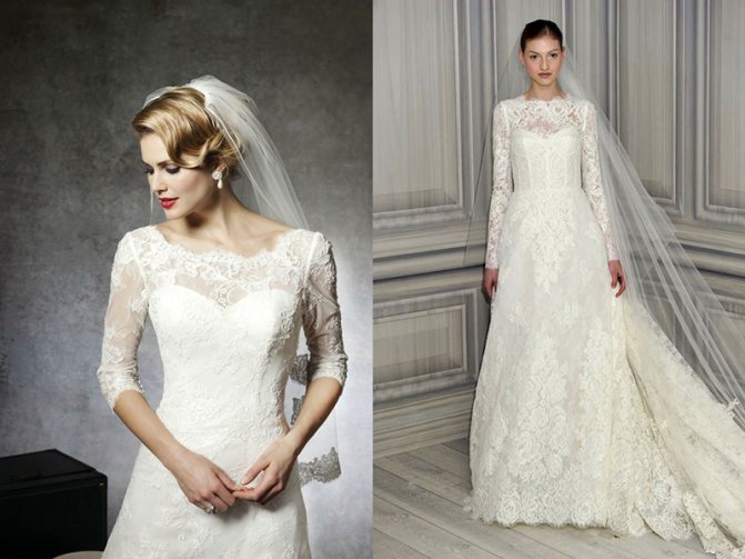 Рукава могут быть сшиты из плотного материала, кружевного полотна, гипюра и тюля. Красиво дополняет наряд для бракосочетания белоснежный воротничок. Вместо рукавов могут использоваться длинные перчатки.
