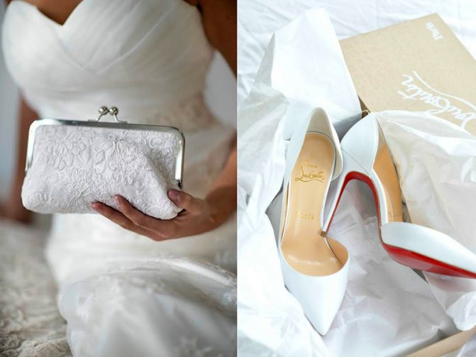 Лучший вариант туфлей к закрытому платью – классические лодочки на шпильке. В качестве удачного дополнения к наряду стоит приобрести маленькую вечернюю сумочку, декор которой повторяет декор платья.