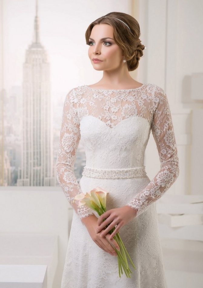 Свадебные платья с закрытыми плечами подчеркивают чистоту и скромность невинной девушки, вступающую в законный брак и собирающуюся стать хранительницей семейных традиций.