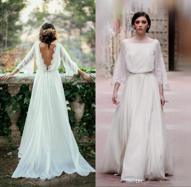 Для свадьбы в стиле рустик невеста может подобрать фасон платья по своим параметрам. Главный критерий при выборе – удобство. Платье не должно стеснять движений и раздражать кожу.