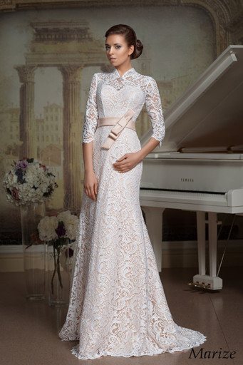 Платья с воротником стойкой хорошо смотрятся вы высоких стройных девушках. Полненьким невестам с пышным бюстом и не слишком длинной шеей лучше рассмотреть другую модель свадебного наряда.