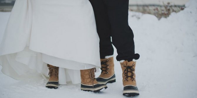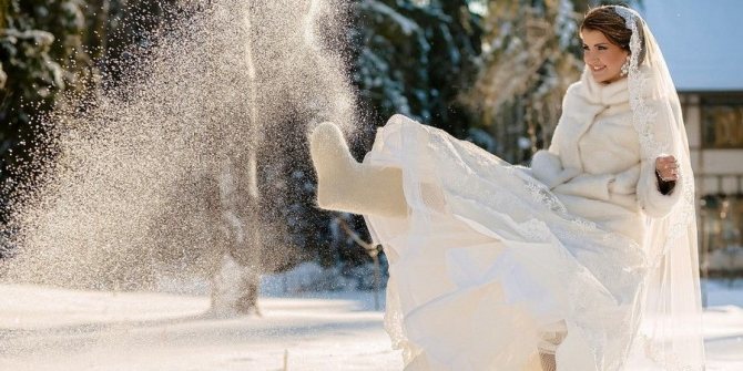 Безусловно, зимой у невесты возникают определенные сложности с обувью. Не многие девушки отважатся на то, чтобы пройти по заснеженным дорожкам от свадебного лимузина до Дворца бракосочетания в открытых туфельках.