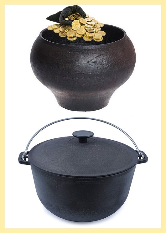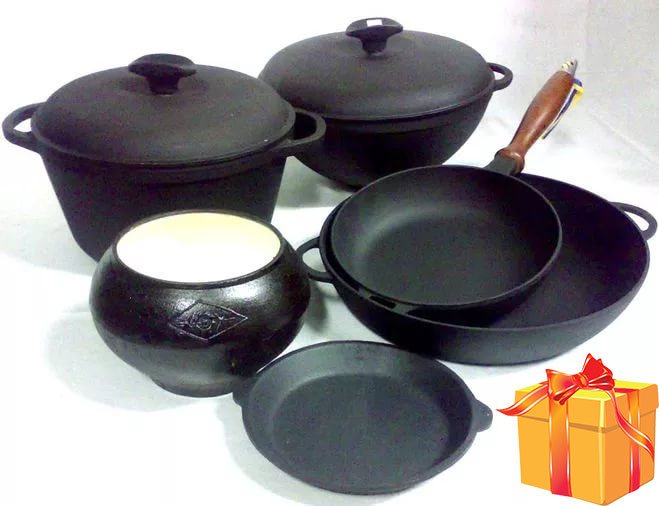 Если презент раздельный, то лучше выбирать парный подарок. Например, мужу сковородку для шашлыков (есть и такое), жене – казан для варки птицы или овощей. Кстати, касаемо кухонных принадлежностей, есть много разновидностей посуды из чугуна.