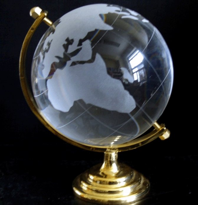 Хрустальный глобус с намеком на пожелание облететь весь мир. Путешествовать по земному шару могут немногие, так пусть ваш презент склонит супругов к поездке на море или тур по Европе.