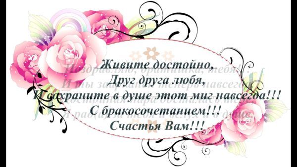 Дороги гладкой вам двоим, И виражей не резких, Пусть будет брак судьбой храним От всех невзгод житейских.