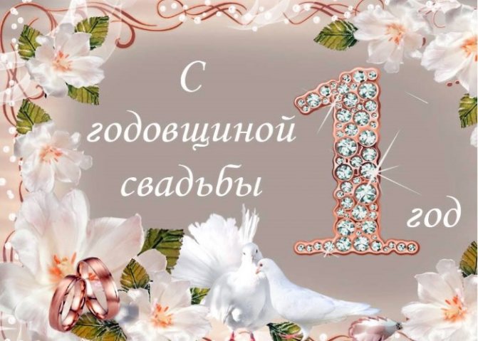 **** В первую годовщину свадьбы желаю молодой семье ситцевой легкости, общих планов и неугасающей любви. Пусть ваши чувства крепнут, семейный достаток полнится, появляются новые большие перспективы и множество радостных моментов. Будьте друг для друга надежной опорой и нежной отрадой!
